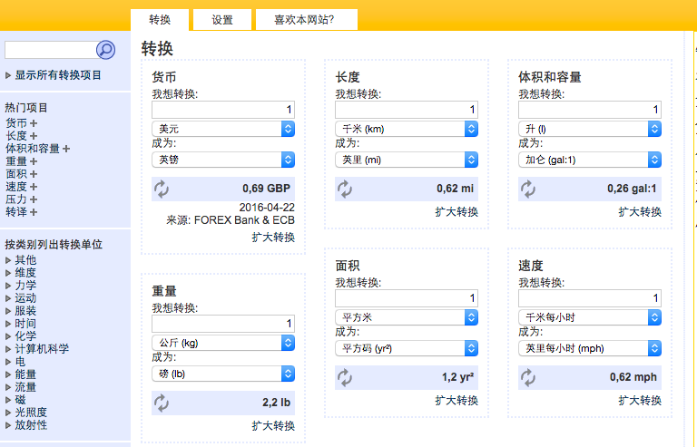 convertworld是一个比较全的单位换算的网站。我经常用它进行时间单位和货币单位的换算。