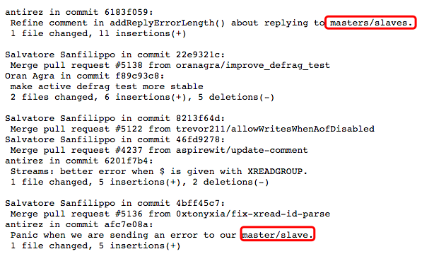 事实上,在技术圈子里,这种关于政治正确的事屡见不鲜。其实,这也不是关于master-slave的第一次讨论,Redis也并不是第一个屈服的。