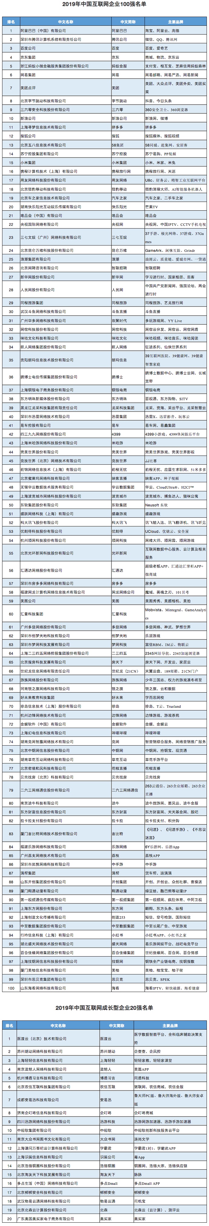 8月14日,中国互联网协会、工业和信息化部网络安全产业发展中心(工业和信息化部信息中心)在2019年中国互联网企业100强发布会暨百强企业高峰论坛上联合发布了2019年中国互联网企业100强榜单、互联网成长型企业20强榜单和《2019年中国互联网企业100强发展报告》。