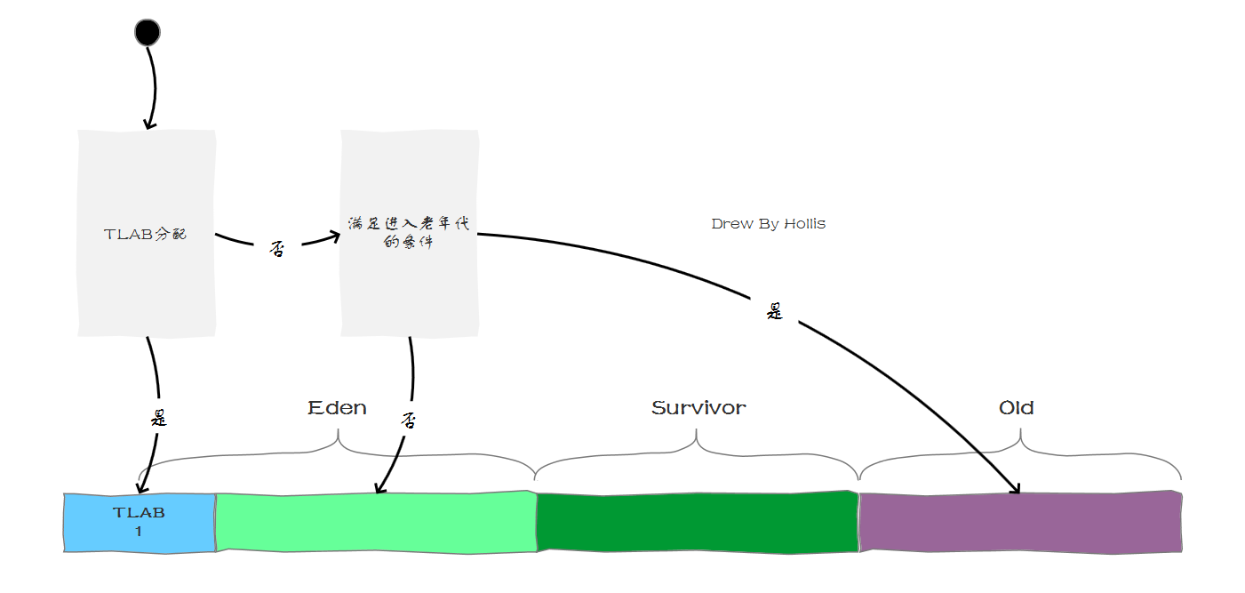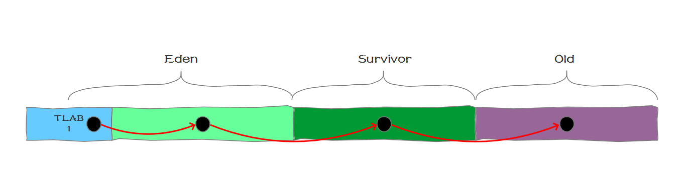 并且,在TLAB分配之后,并不影响对象的移动和回收,也就是说,虽然对象刚开始可能通过TLAB分配内存,存放在Eden区,但是还是会被垃圾回收或者被移到Survivor Space、Old Gen等。