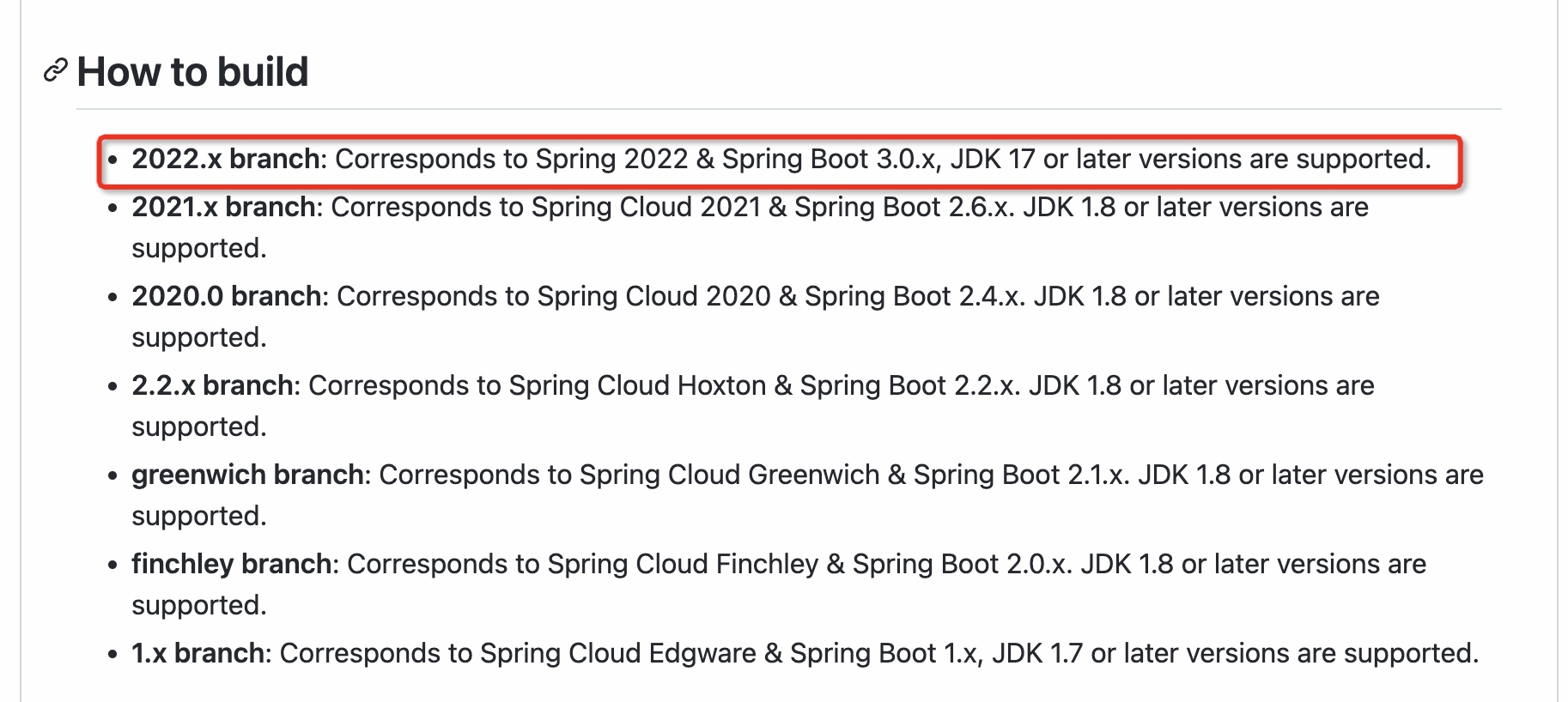 Spring Cloud 2022.0.0是构建在Spring Framework 6.0和Spring Boot 3.0 之上的一个主要版本。所以,他对JDK要求同样是最低需要是Java 17,对J2EE的要求最低需要Jakarta EE 9。