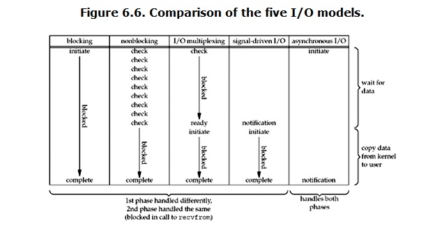 两者的区别就在于synchronous IO做”IO operation”的时候会将process阻塞。按照这个定义,之前所述的blocking IO,non-blocking IO,IO multiplexing都属于synchronous IO。