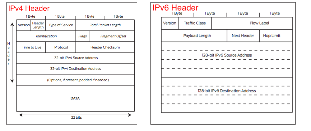 在Internet上,数据以分组的形式传输。IPv6定义了一种新的分组格式,目的是为了最小化路由器处理的消息标头。由于IPv4消息和IPv6消息标头有很大不同,因此这两种协议无法互操作。但是在大多数情况下,IPv6仅仅是对IPv4的一种保守扩展。除了嵌入了互联网地址的那些应用协议(如FTP和NTPv3,新地址格式可能会与当前协议的语法冲突)以外,大多数传输层和应用层协议几乎不怎么需要修改就可以工作在IPv6上。