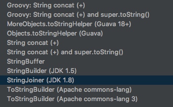 目前我使用的IDEA的toString生成策略默认的是使用JDK 1.8提供的StringJoiner。