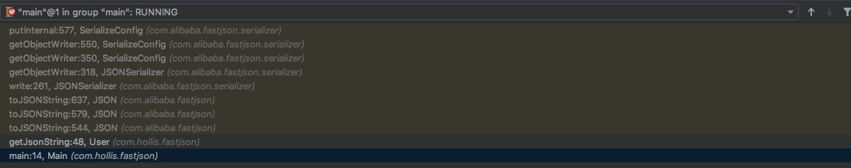通过调用栈追根溯源,我们可以发现,JavaBeanSerizlier是在SerializeConfig的成员变量serializers中获取到的,那么继续深入,就要看SerializeConfig是如何被初始化的,即BuyerInfo对应的JavaBeanSerizlier是如何被塞进serializers的。
