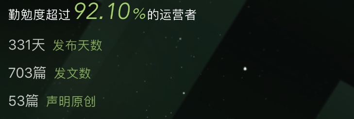 公众号这一年发布了703篇文章,平均每天两篇。共53篇原创,平均每周一篇。