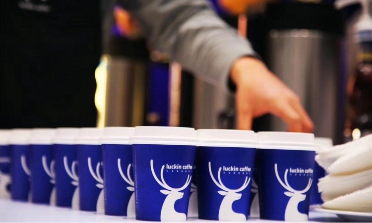于是在2017年的10月,在北京故宫太和殿外的箭亭广场旁,瑞幸成立了第一家咖啡店,一杯蓝色包装的咖啡,杯体上印着一只醒目的白色鹿头。