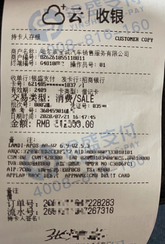 因为买车的第二天我就要回杭州了,所以因为时间的原因,我没办法去办理贷款,而我爸又没有固定的收入流水。所以只能付了全款。