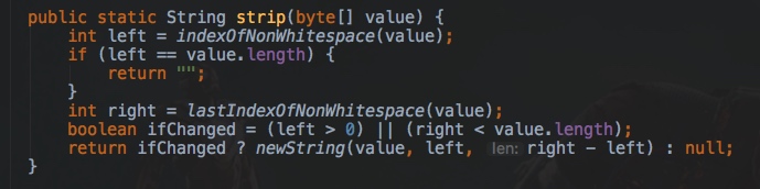 不知道大家有没有注意到,在Java 11的发行版中,添加了新的strip()方法来删除字符串中的前导和末尾空格。