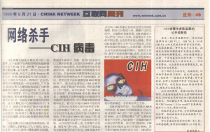 对于金山和瑞星的步步紧逼,王江民也曾做过防守,在2001年年的4月26日,CIH软件病毒爆发,这个在1997年被一位大学四年级的大学生制作出来的病毒,每一年都会席卷全球,甚至计算机业界人士一度称它为“电脑屠夫”。