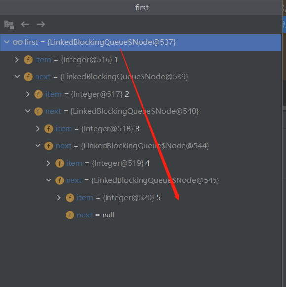 //为什么这里要判断first是否为null呢?因为添加时不知道队列里是否已经存在元素,若first为null,说明队列里没有元素
