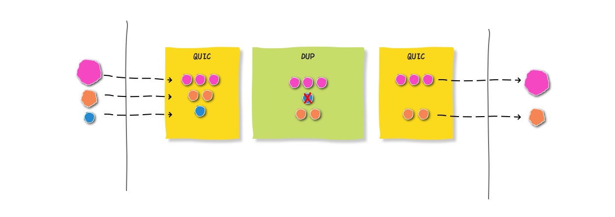 类似于HTTP/2,QUIC在同一物理连接上可以有多个独立的逻辑数据流,这些数据流并行在同一个连接上传输,且多个数据流之间间的传输没有时序性要求,也不会互相影响。
