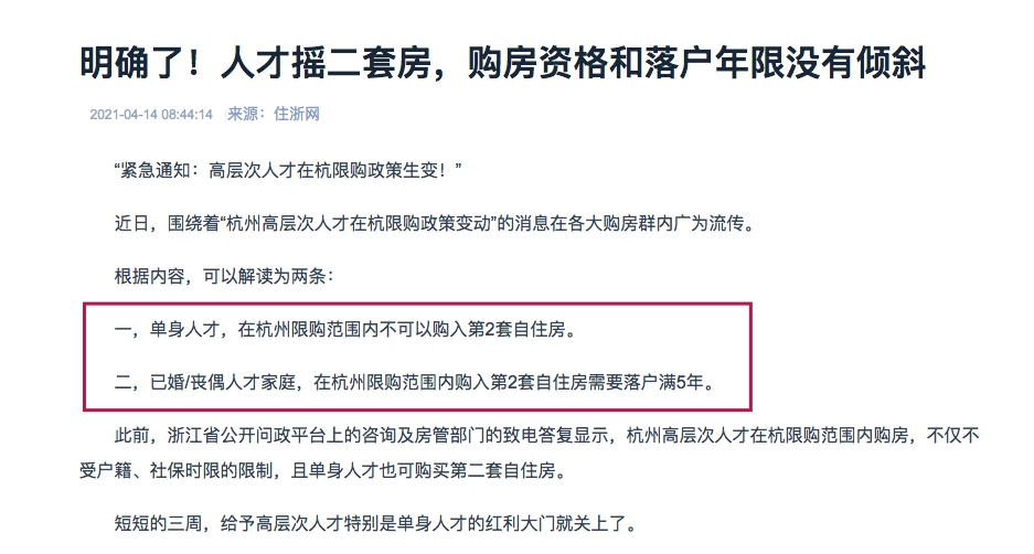 但是,后来4月份出了新政,杭州家庭需要落户满5年才能买二套房,所以,我就没有房票了。
