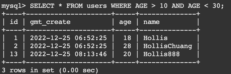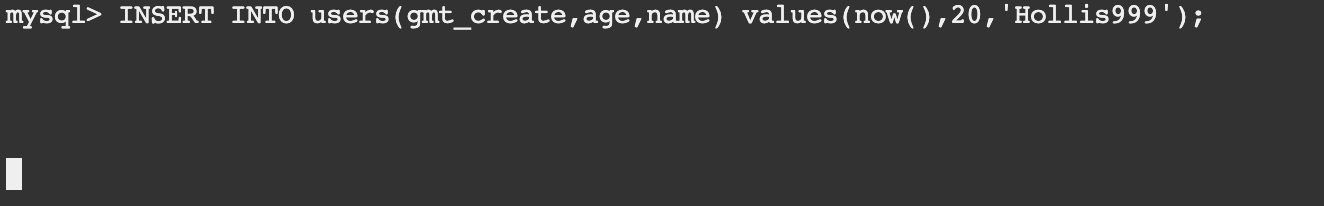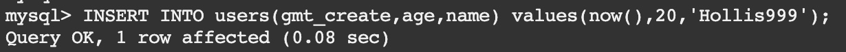 INSERT INTO users(gmt_create,age,name) values(now(),38,'Hollis666');