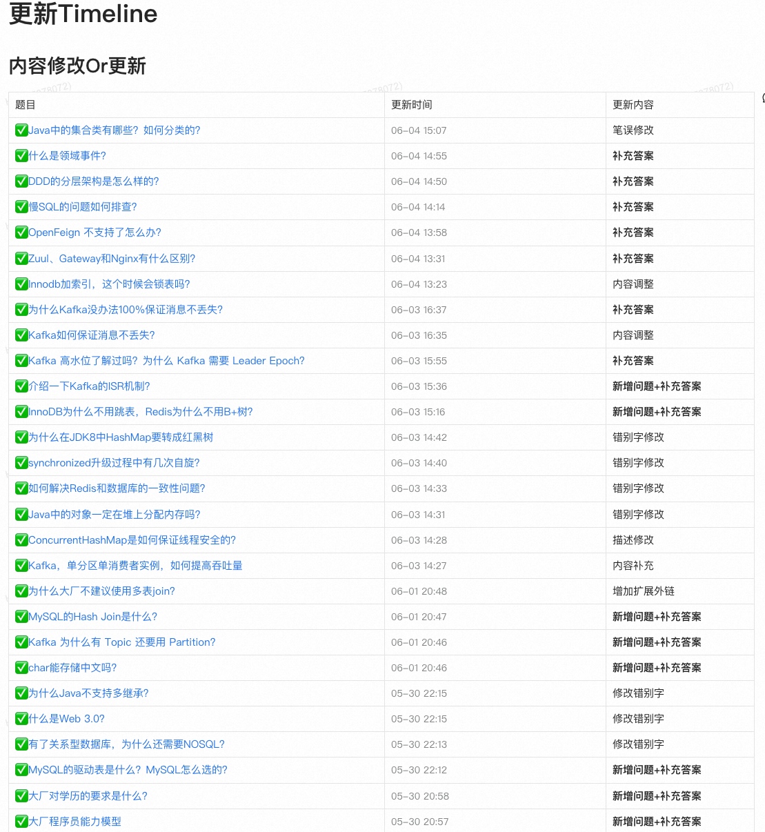 我们会持续更新内容,争取做到全网最新、最全、最准确的Java后端面试宝典。