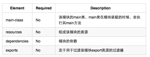 元素的模块意味着该模块是可执行的。也就是说,模块名能够被列在命令行中,然后main-class