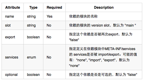 元素描述一个或多个对于其它模块的依赖。dependencies